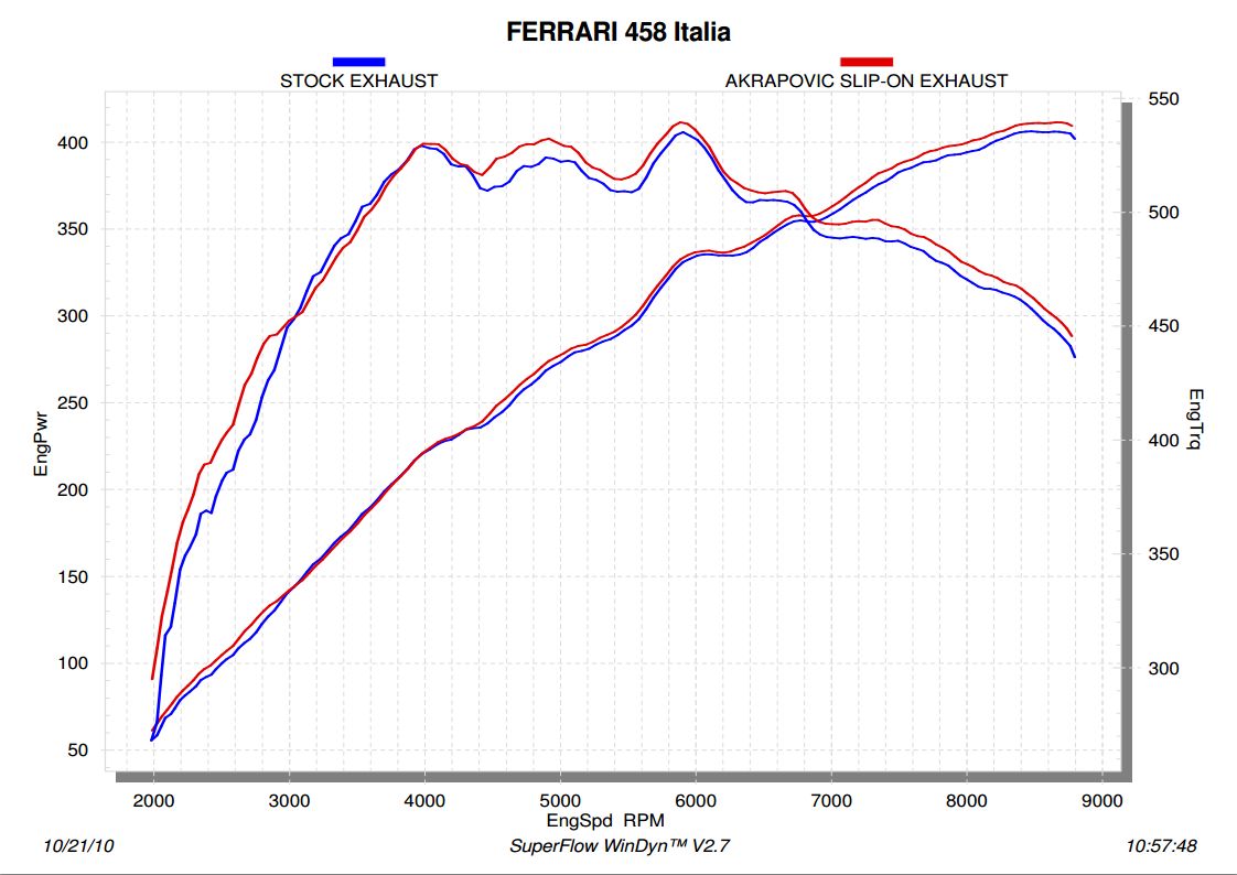 The Ferrari 458 Italia is one of the most impressive road-going cars ever designed. With its lightweight construction, technical innovations, and 570 hp 4.5-liter engine, it’s a memorable driving experience. Add our titanium Slip-On performance exhaust system for even more power, reduced weight, and an enhanced sporty sound. Our Slip-On features dualmode exhaust valves and a triple exit system that delivers crisp but subdued sound at low rpm, but at higher rpm it fully unleashes an incredible deep sporty sound from the F1-inspired, high-revving V8. Complete the look with a set of three exquisite carbon fibre tailpipes. Further tuning opportunities and even more aggressive sound are available with our titanium link pipe set with high-flow catalytic converters.