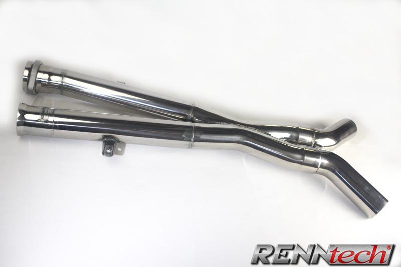 RENNtech T-304 stainless steel sound and performance exhaust includes an x pipe and secondary catalytic bypass pipes; offering a dramatic improvement in both sound and overall performance.