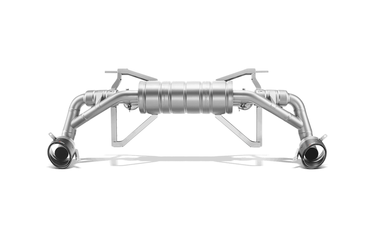 What could make a supercar even better? The answer: lower weight, more power, and an unbelievable change in engine sound thanks to this Akrapovič Slip-On exhaust system. Constructed from our unique titanium alloy, our recision-engineered performance exhaust provides performance advantages over the stock exhaust and, thanks to the engine placement, weight reductions in the vehicle’s rear deliver substantially improved handling. The combination of specialized muffler shapes, secondary resonators, and cast titanium dual-mode exhaust valves reduces back pressure and produces an incredible symphony from the V10 engine. Complete the look with a set of two exquisite carbon fibre tailpipes. Select the optional Akrapovic sound kit for adjustable sound.