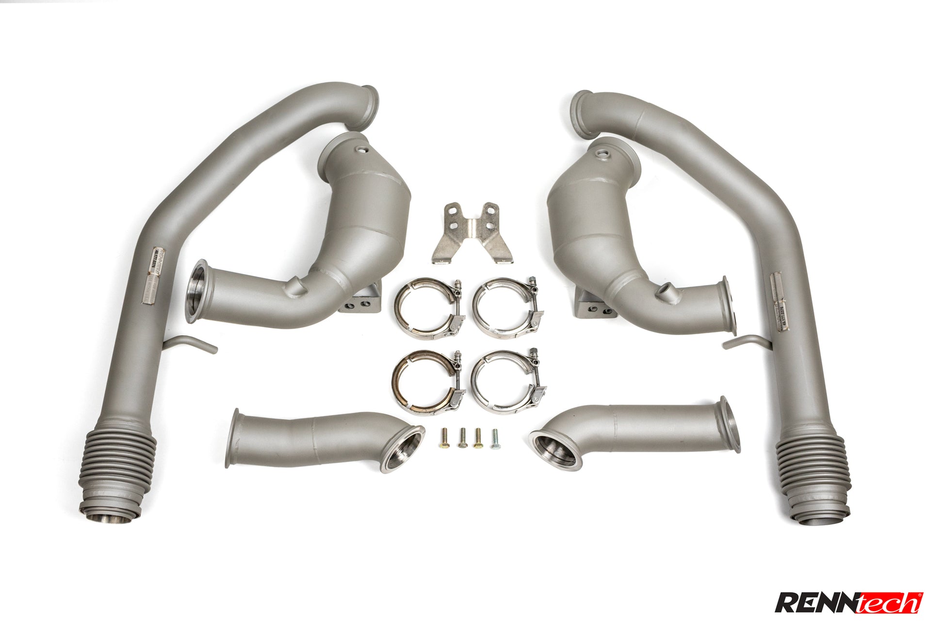 RENNtech-Downpipes bestehen aus hochfestem T304-Edelstahl und sind mit 200-Zellen-Sportkatalysatoren ausgestattet.