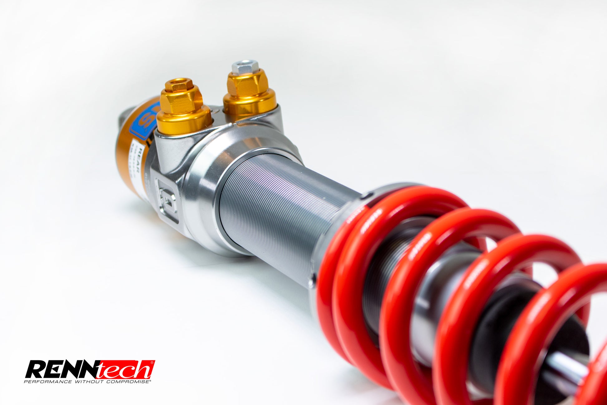 Die Stoßdämpfer sind für den Einsatz auf der Straße oder auf der Rennstrecke einstellbar. Eine weitere Feinabstimmung der Federung erfolgt schnell und einfach über das Einstellrad am Dämpferbehälter. Egal, ob Sie die meiste Zeit auf der Rennstrecke oder auf der Straße verbringen, die RENNtech Performance-Stoßdämpfer bieten für jede Situation die perfekte Einstellung.