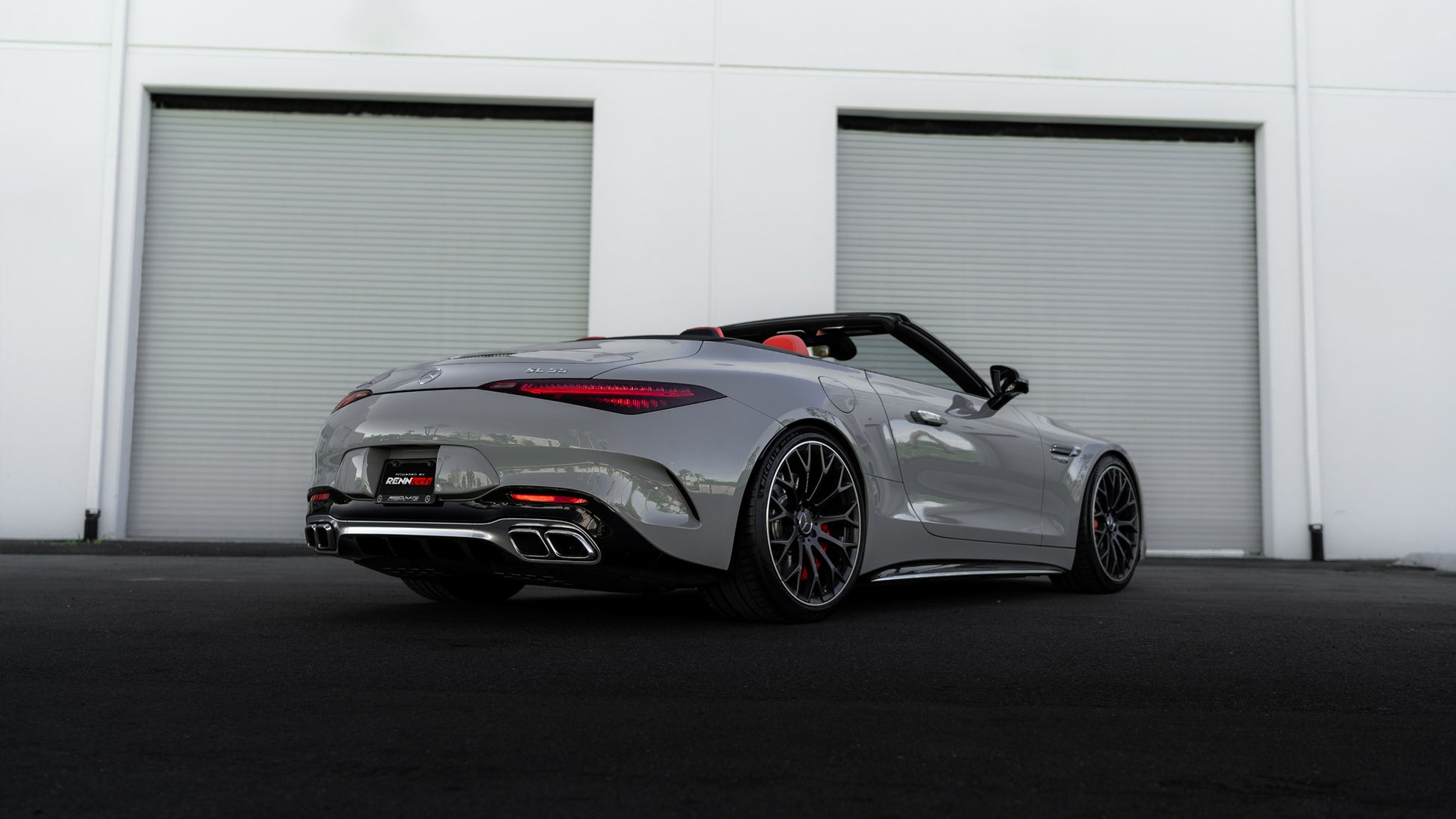 Das einstellbare Fahrwerkskit R232 SL55 von RENNtech bietet eine insgesamt verbesserte Ästhetik und eine aggressive Fahrzeughaltung bei gleichzeitiger Verbesserung des Fahrzeughandlings und der Leistung.
