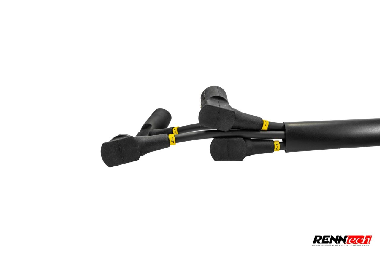 RENNtech ignition wiring for 4-valve AMG M117 V8-engines provides the necessary connections to deliver high-voltage electricity from the ignition coil to the spark plugs, enabling the engine to start and run. The kit includes wires, terminals, and connectors that ensure a reliable flow of electricity to the spark plugs, allowing them to ignite the fuel-air mixture.