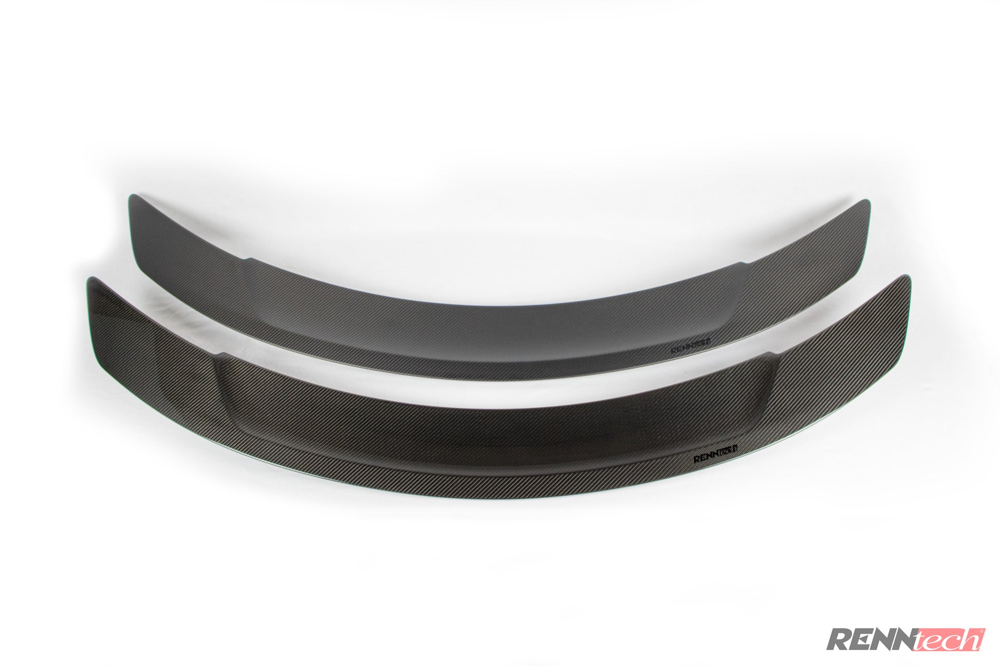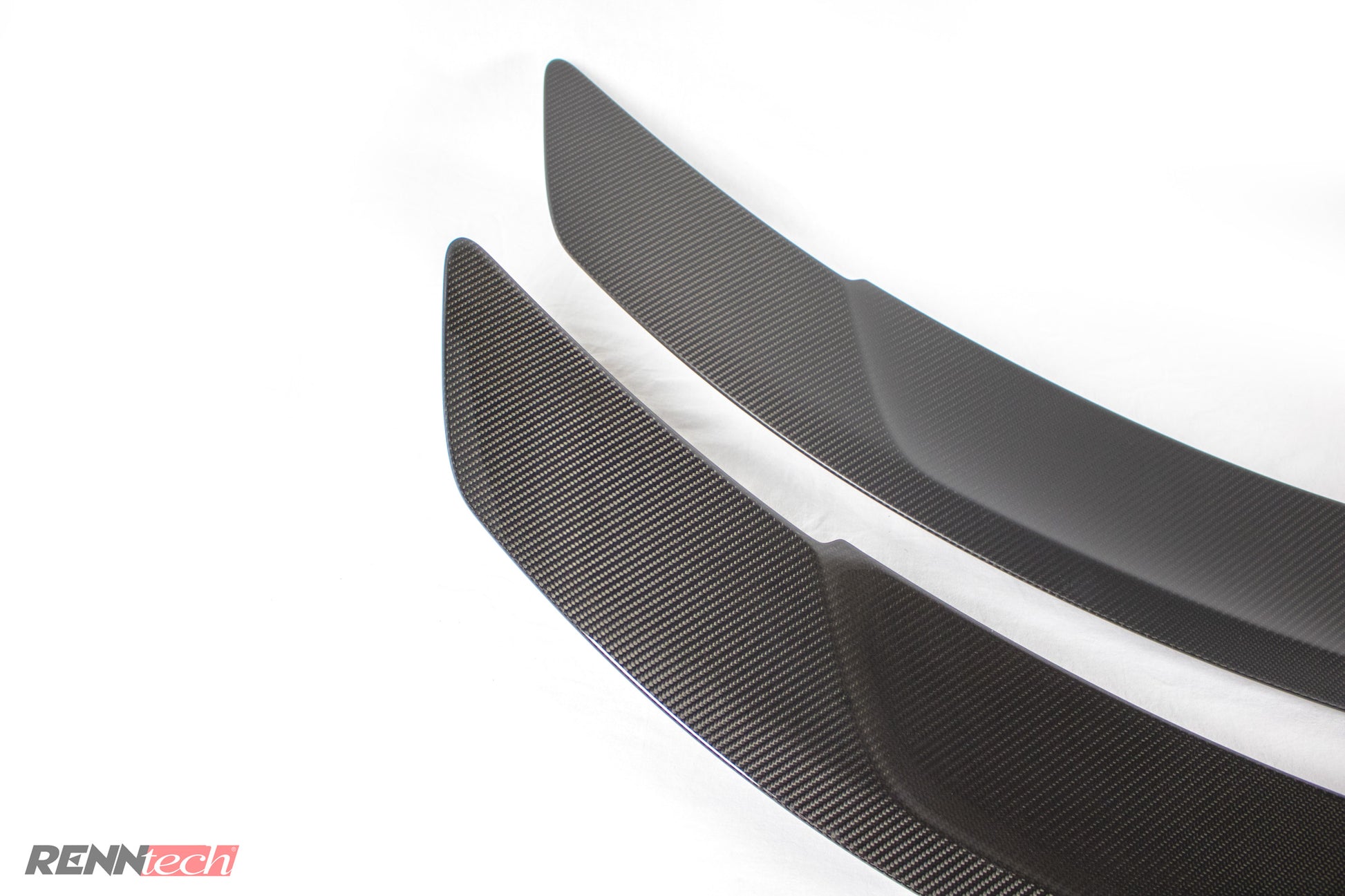 In addition to the carbon fiber decklid spolier, this special package includes the RENNtech T-304 stainless steel (SS) sport mufflers which are 100% hand made in the USA. This exhaust system is rigorously tested to remove any unwanted resonances in the cabin to deliver a deep sound that keeps with the character of a luxury performance vehicle. Our mufflers with 2 3/4 inch diameter tubing offer lighter weight than the stock exhaust and improve performance by reducing exhaust back pressure, increasing exhaust gas flow and cylinder scavenging.