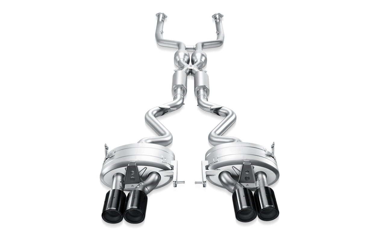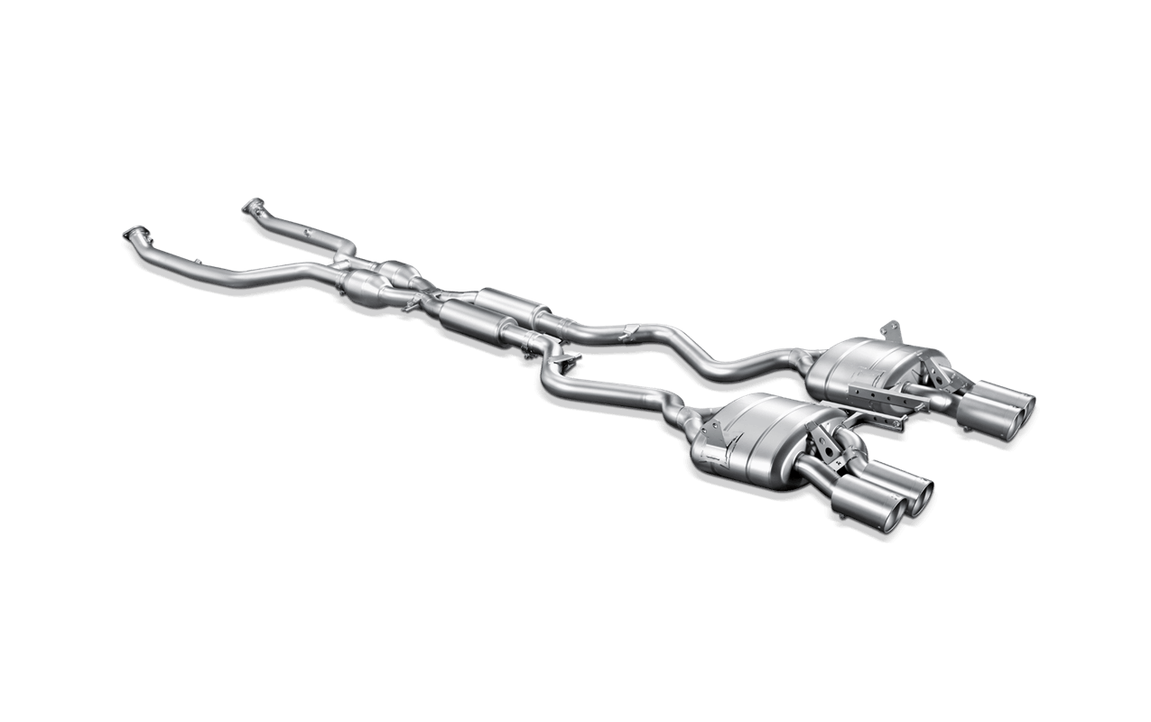 The Evolution performance exhaust system for the BMW M3 consists of dual-outlet mufflers, flow-optimized link pipes, and an X-pipe that incorporates high-flow 100 cpsi sports catalytic convertors and resonators. The power and torque gains of the BMW M3 with the Evolution system are just amazing. A substantial increase is detected over a very wide rpm range, and so it increases responsiveness during all phases of driving. Together with incredible weight savings, the Evolution system dramatically changes the power-to-weight ratio. Our goal was to design a system that delivers a deep, rich growl at cruising speeds while also allowing the driver to enjoy an aggressive roar when driving hard. Complete the look with a set of two exquisite tailpipes in titanium or carbon fibre.