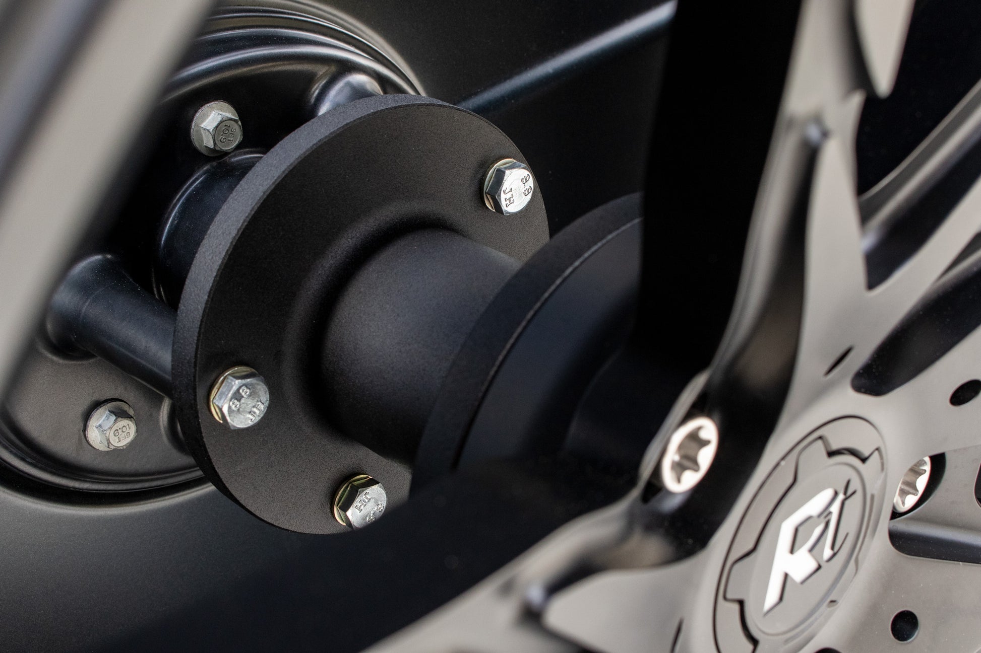 RENNtech’s Reverse Spare Mount for G-Class is designed in-house by our engineering team for high rigidity and optimal fit. The mount can handle a larger wheel/tire combo than the stock spare and is designed to keep the wheel in position to clear door handle and quarter panel when rear door hatch is open.