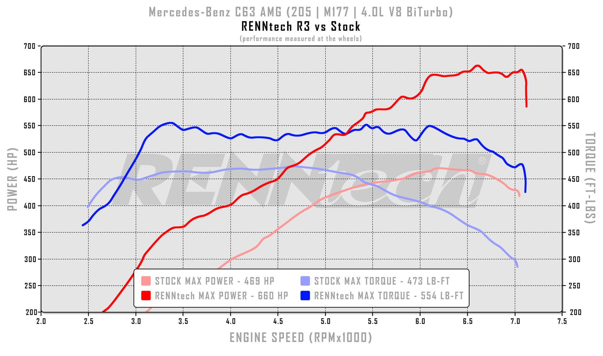 • We have found the new M177 engine stock performance numbers vary from the baseline figures claimed by Mercedes Benz. We typically see higher baseline numbers than claimed by the factory. Numbers will be dependent on conditions and fuel quality.
